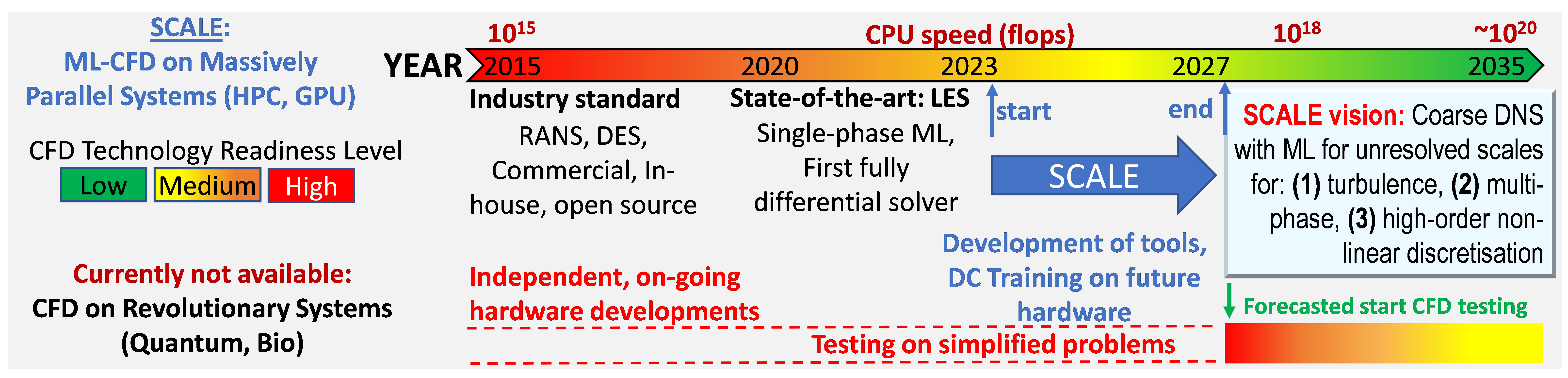 Illustration of today’s CPU speed, computing hardware, state-of-the-art CFD methods used by industry and academia and foreseen developments in this area, in relation to the timeline of SCALE